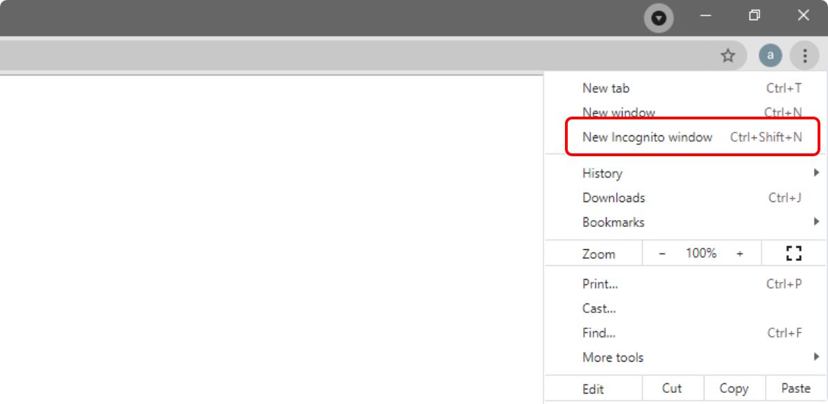 Step 1 - Click on the More options from top right and select New Incongnito Window